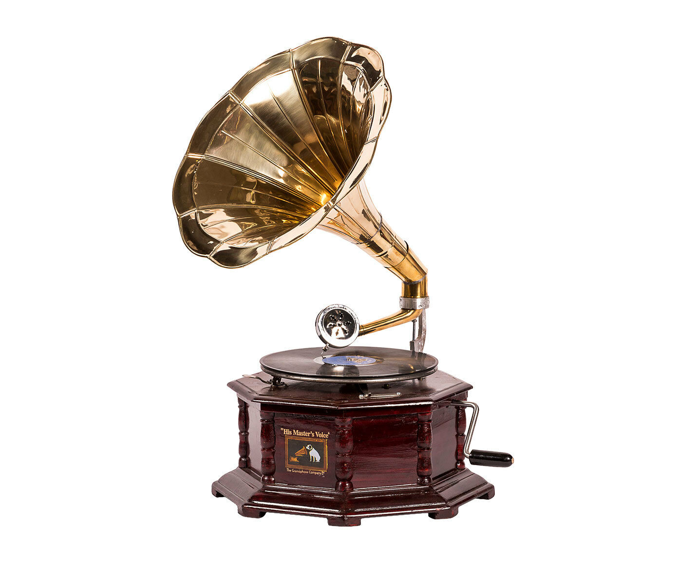 GRAMMOFONO OTTAGONALE IN LEGNO CON TROMBA IN OTTONE