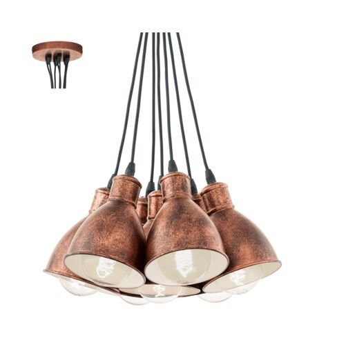 LAMPADA A SOSPENSIONE 7 LUCI VINTAGE ACCIAIO RAME SALONE CAMERA CUCINA