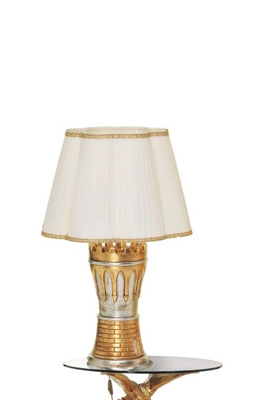 LAMPADA TORRE CON PARALUME IN CERAMICA FOGLIA ORO E ARGENTO ARREDO CASA