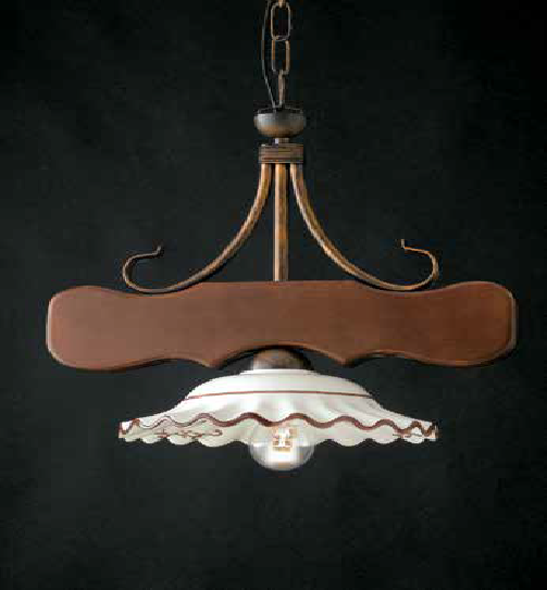 LAMPADARIO 1 LUCE IN LEGNO NOCE STRUTTURA MARRONE ORO CON COPPE IN CERAMICA