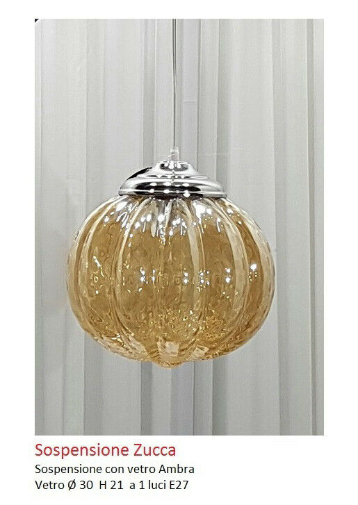 LAMPADARIO A 1 LUCE FORMA A ZUCCA CON VETRO AMBRA