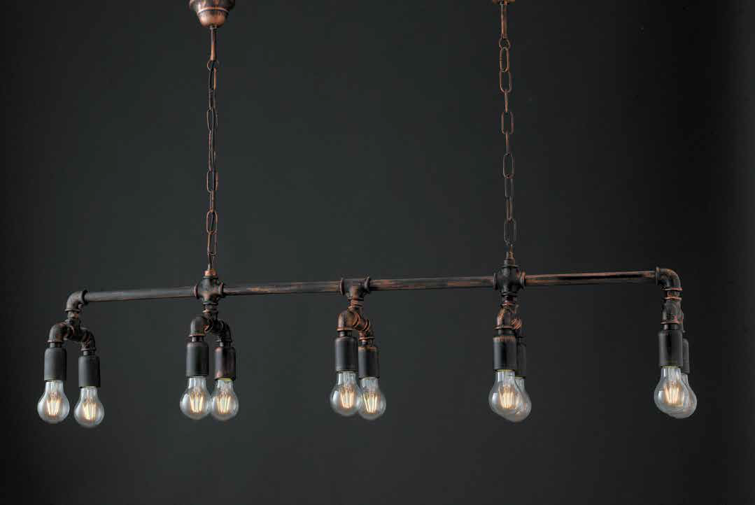 LAMPADARIO A 10 LUCI IN COLORE NERO/RAME