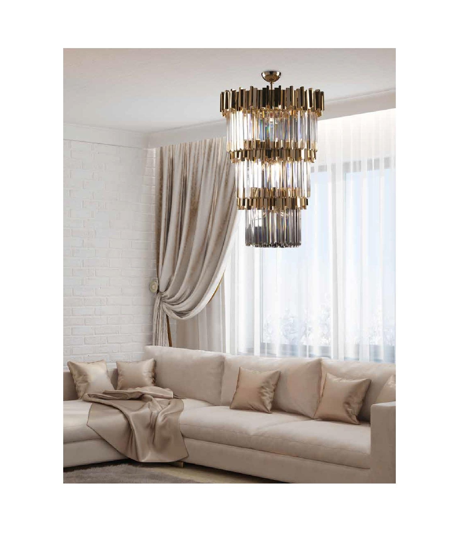 lampadario a sospensione moderno con losanghe in cristallo 3 piani 15 luci diam 50 cm LUCY