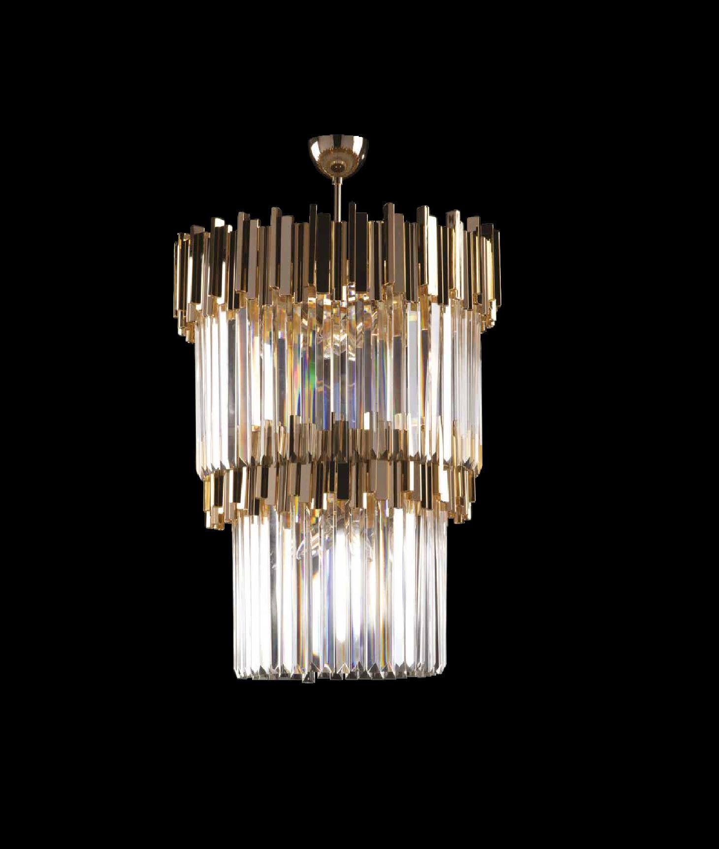 lampadario a sospensione moderno con losanghe in cristallo 2 piani 12 luci diam 50 cm LUCY