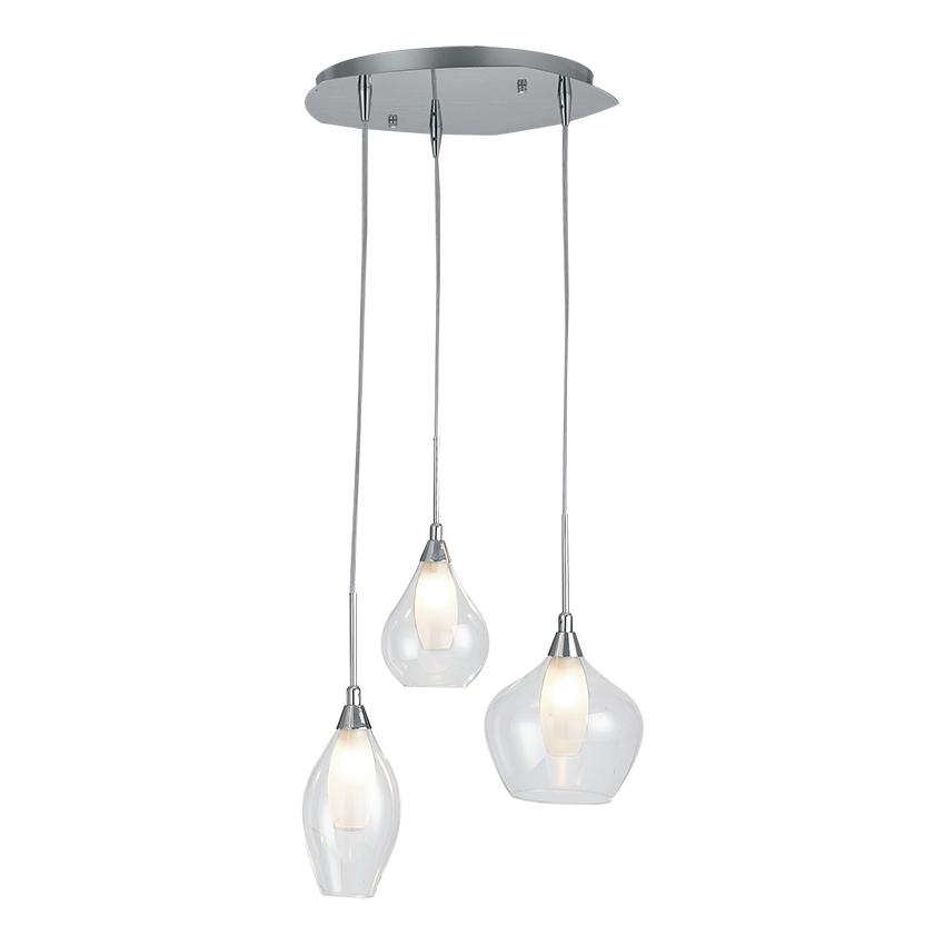 lampadario a sospensione moderno in vetro trasparente 3 luci mis D35cm SKYLINE