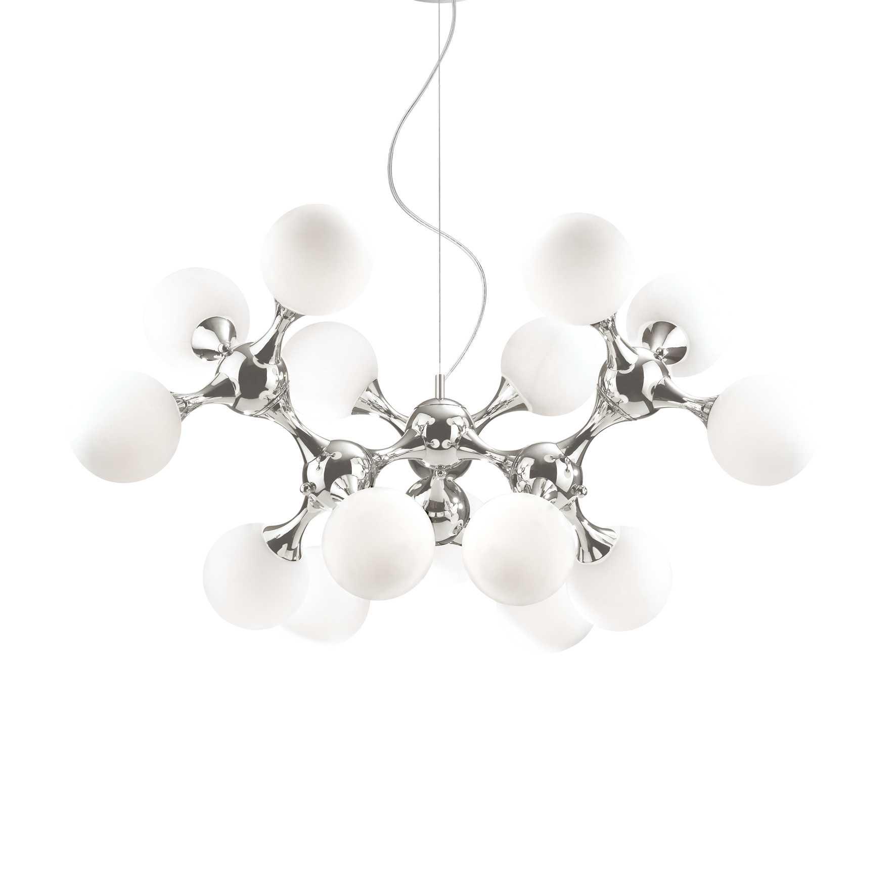 lampadario a sospensione struttura in metallo cromato e sfere bianche diam 105 cm 15 luci NODI