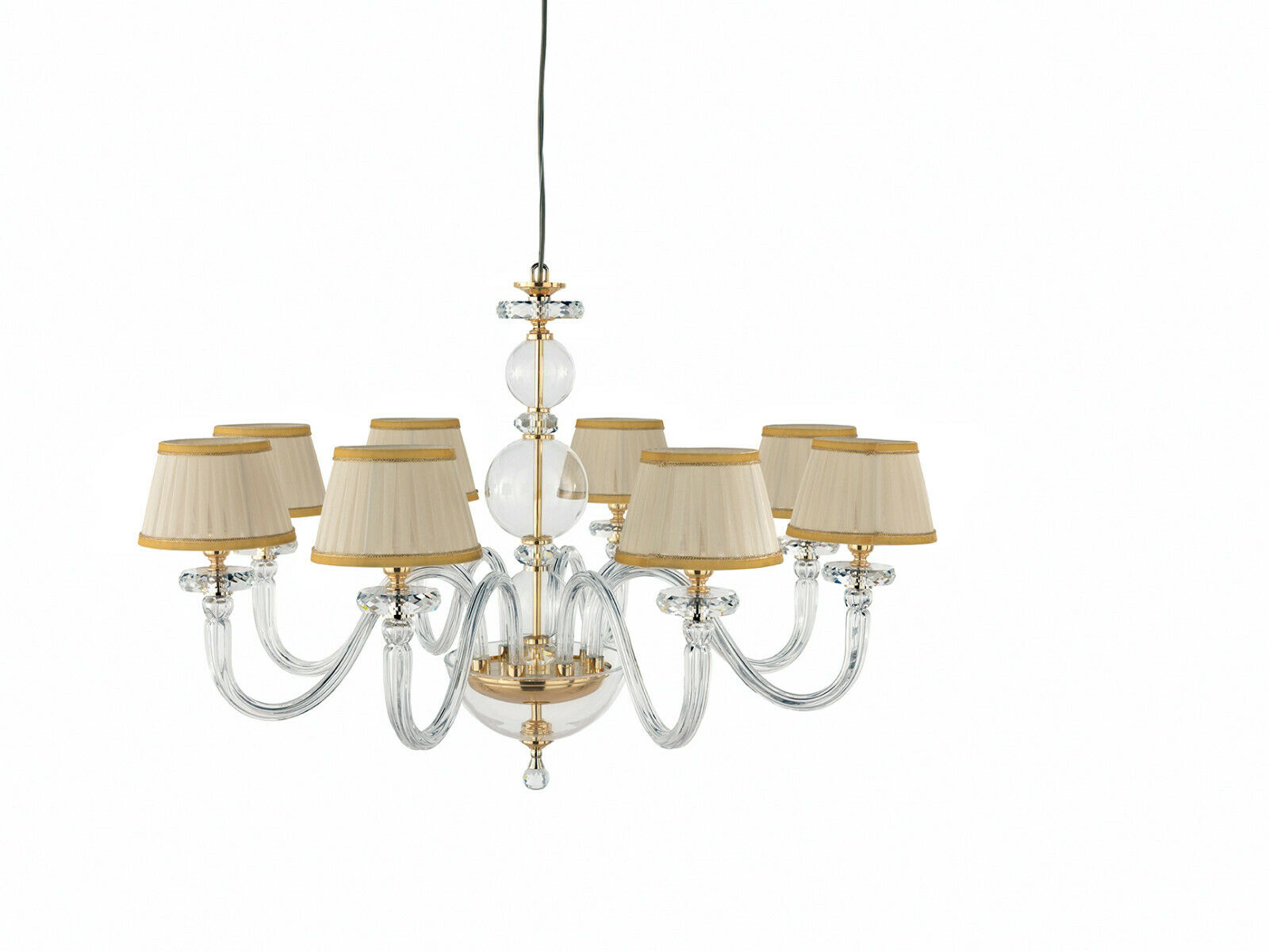 LAMPADARIO BACH A 8 LUCI IN VETRO E DETTAGLI ORO CON PARALUMI
