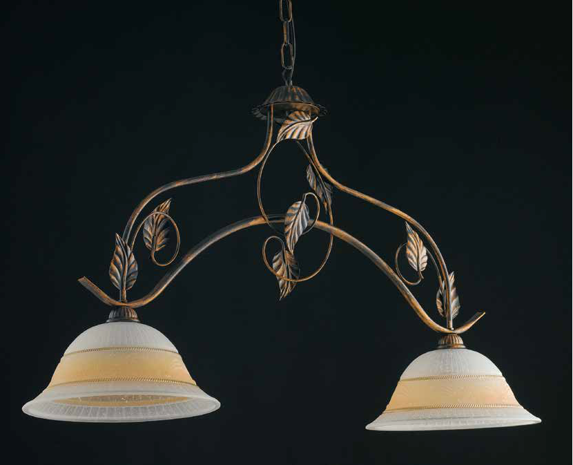 LAMPADARIO A 2 LUCI IN FERRO BATTUTO MARRONE/ AVORIO ORO