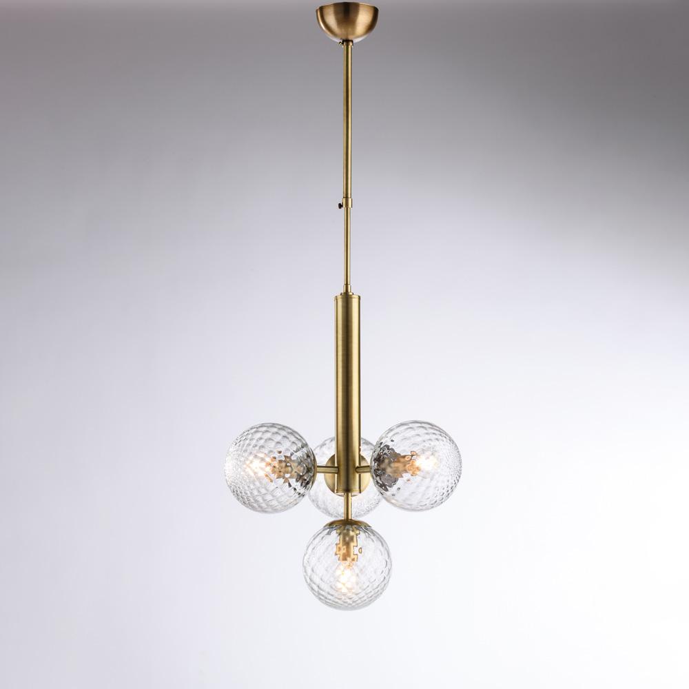 lampadario bronzo con sfere in vetro 4 luci diam 32 cm