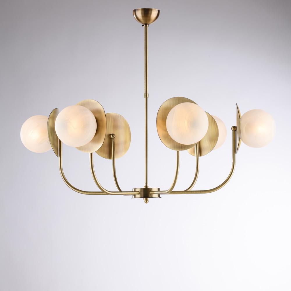 lampadario bronzo con sfere in vetro bianche 6 luci diam 92 cm