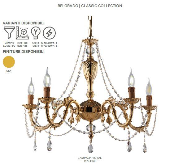 lampadario classico oro con inserti in cristallo 5 luci diam 70 cm BELGRADO