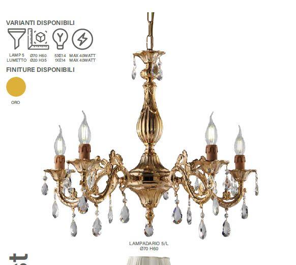 lampadario classico oro con inserti in cristallo 5 luci diam 70 cm BUDAPEST