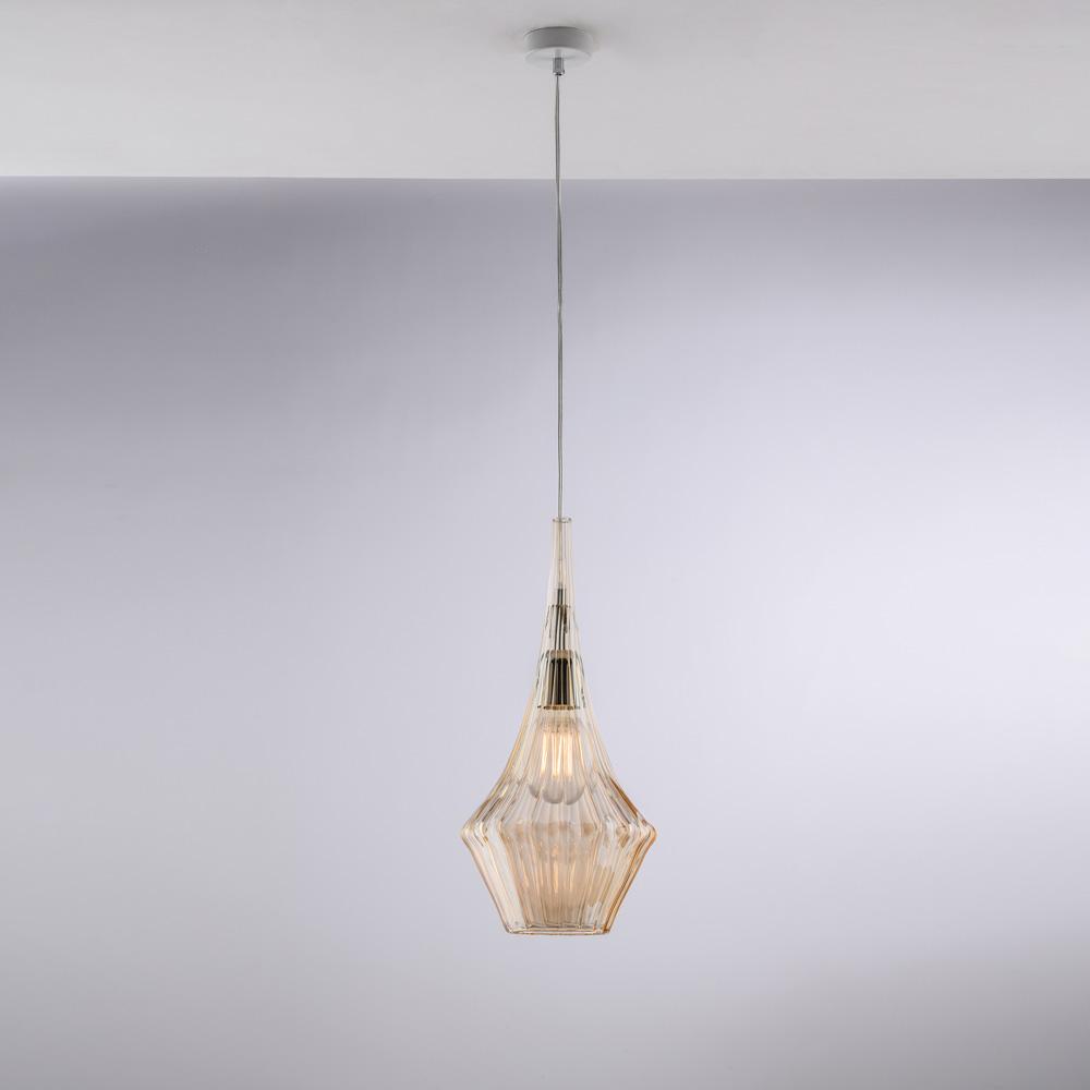 lampadario con sospensioni in vetro ambra 1 luce diam 20 cm
