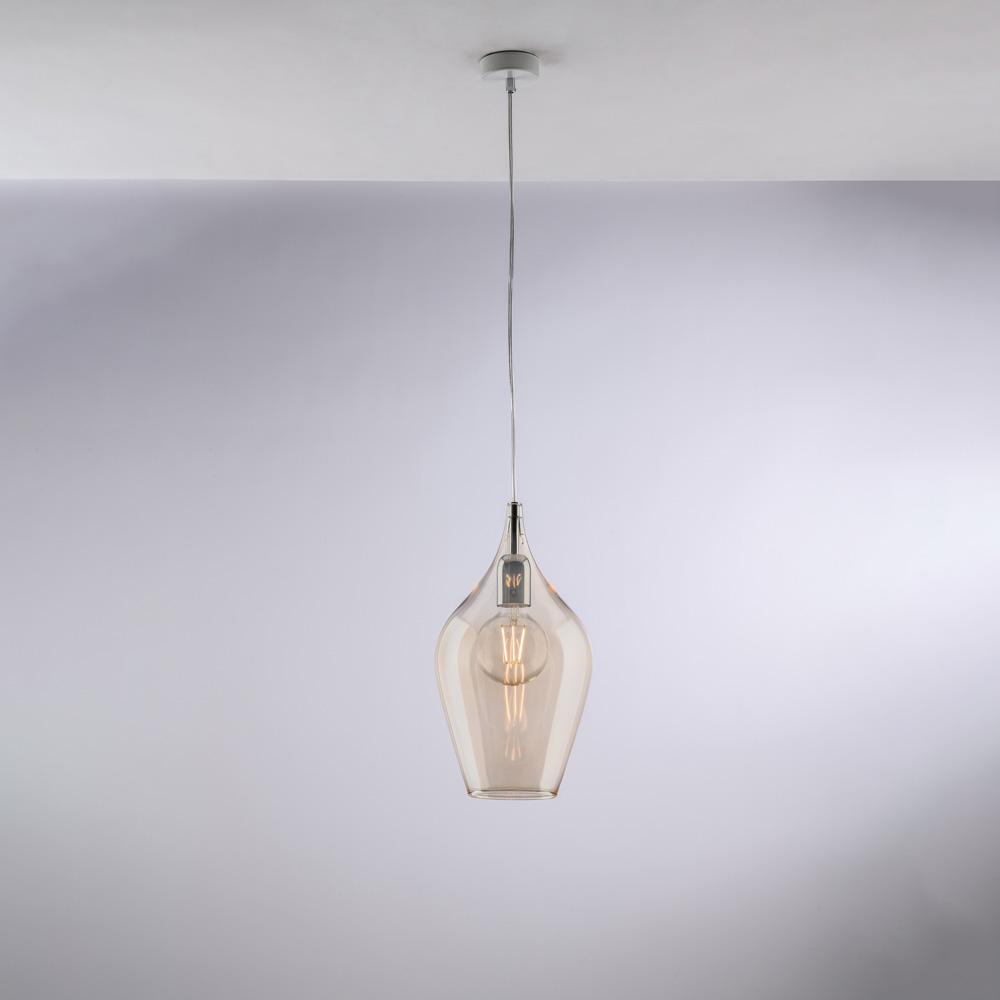 lampadario con sospensioni in vetro ambra 1 luce diam 20 cm