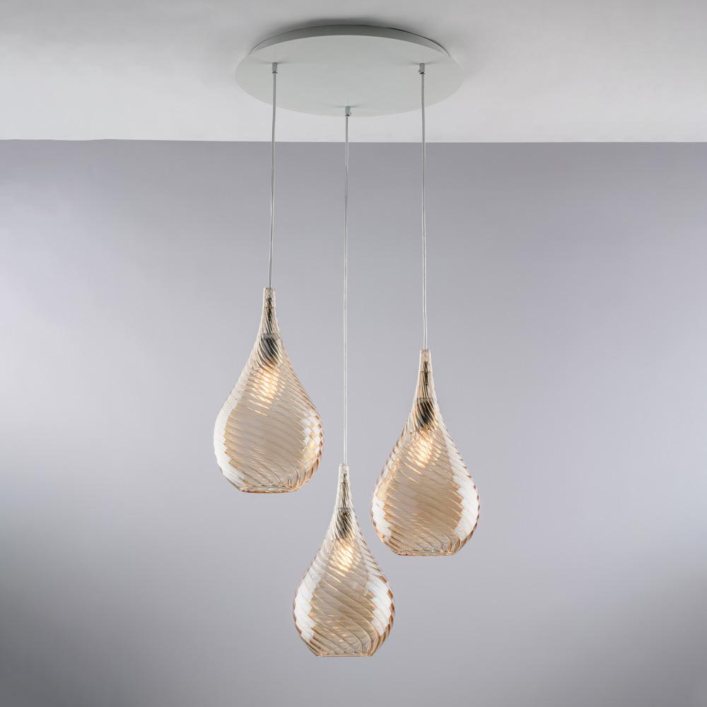 lampadario con sospensioni in vetro ambra 3 luci diam 50 cm