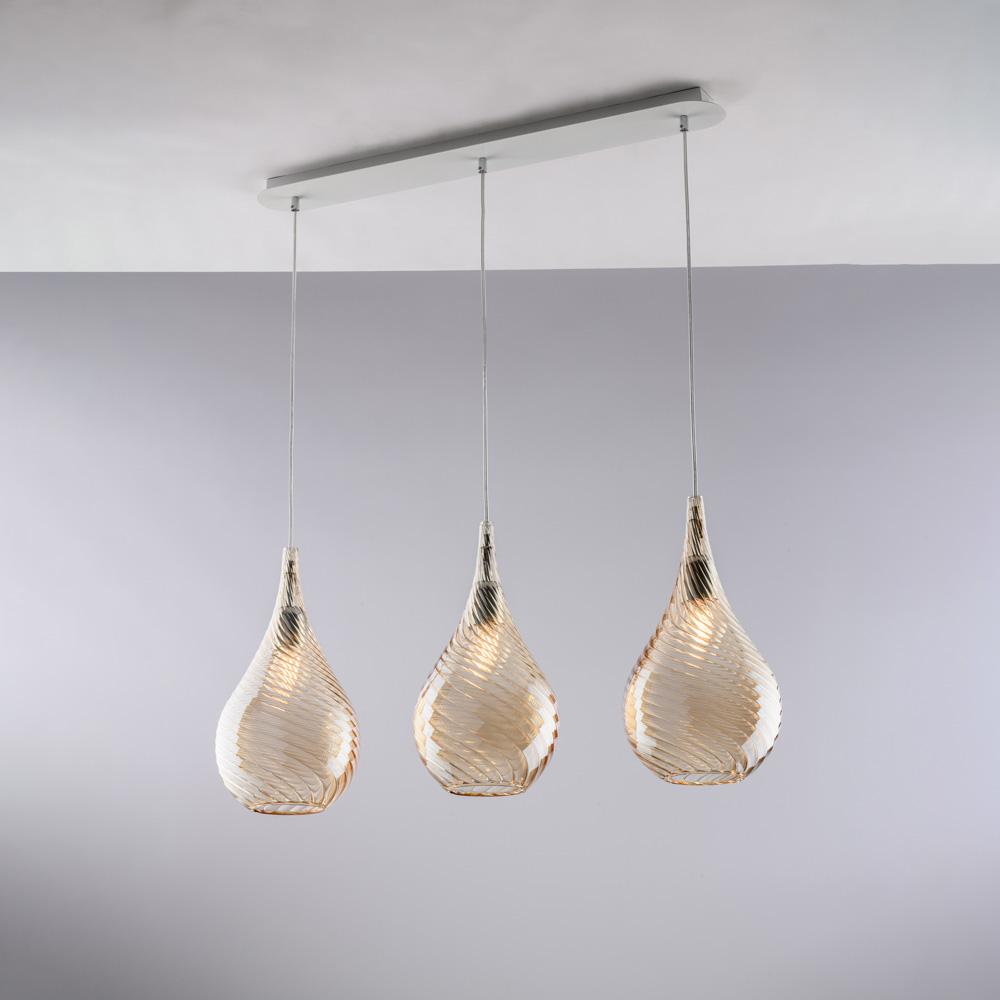 lampadario con sospensioni in vetro ambra 3 luci L 75 cm