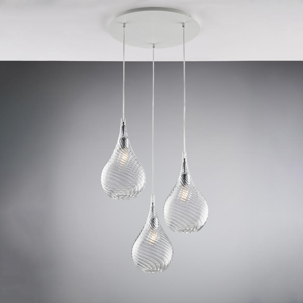 lampadario con sospensioni in vetro trasparente 3 luci diam 50 cm