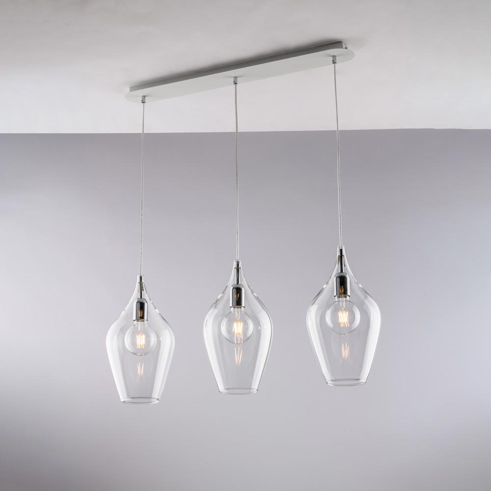 lampadario con sospensioni in vetro trasparente 3 luci L 75 cm