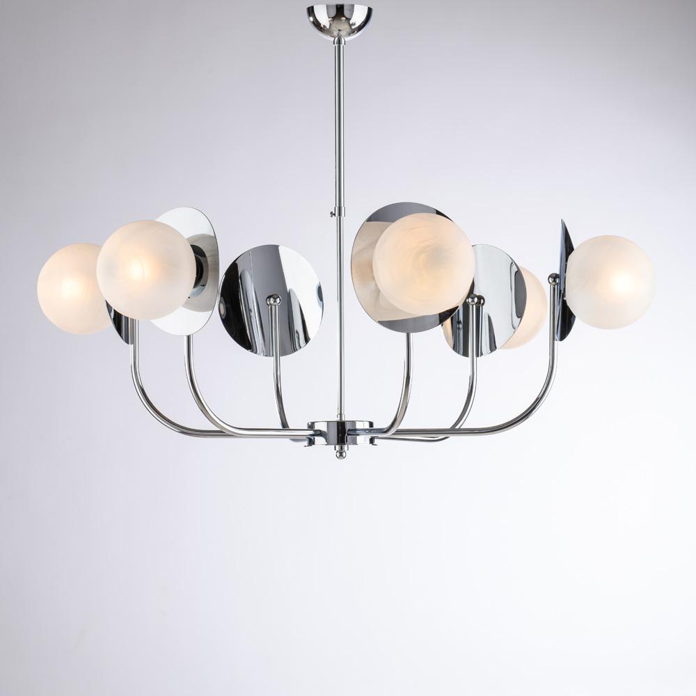 lampadario cromo con sfere in vetro bianche 6 luci diam 92 cm