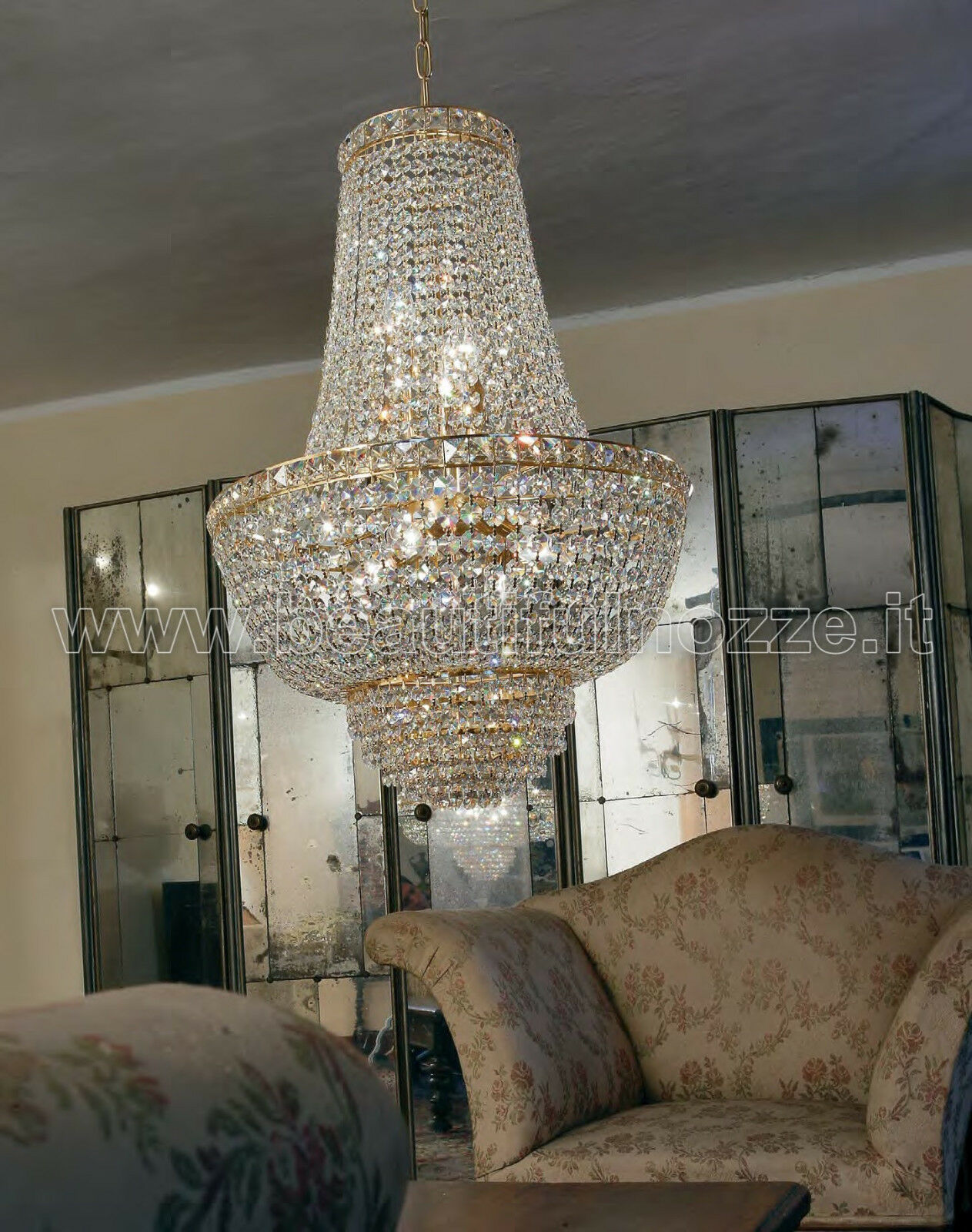 LAMPADARIO IMPERO SETTAT CON CRISTALLI STRUTTURA ORO O CROMO 7 LUCI