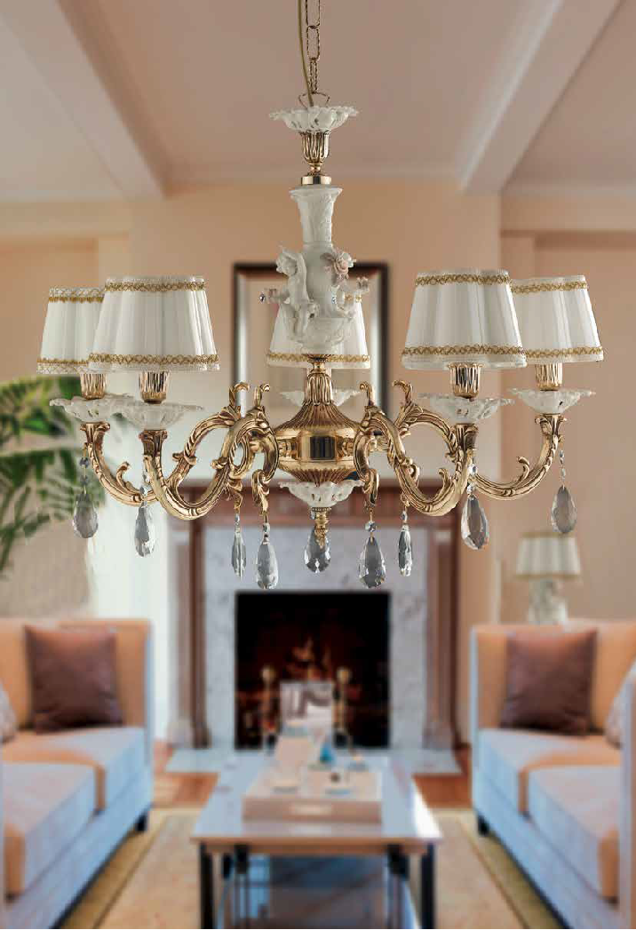LAMPADARIO IN FUSIONE DECORO ORO/CERAMICA DI CAPODIMONTE/PARTICOLARI CRISTALLO