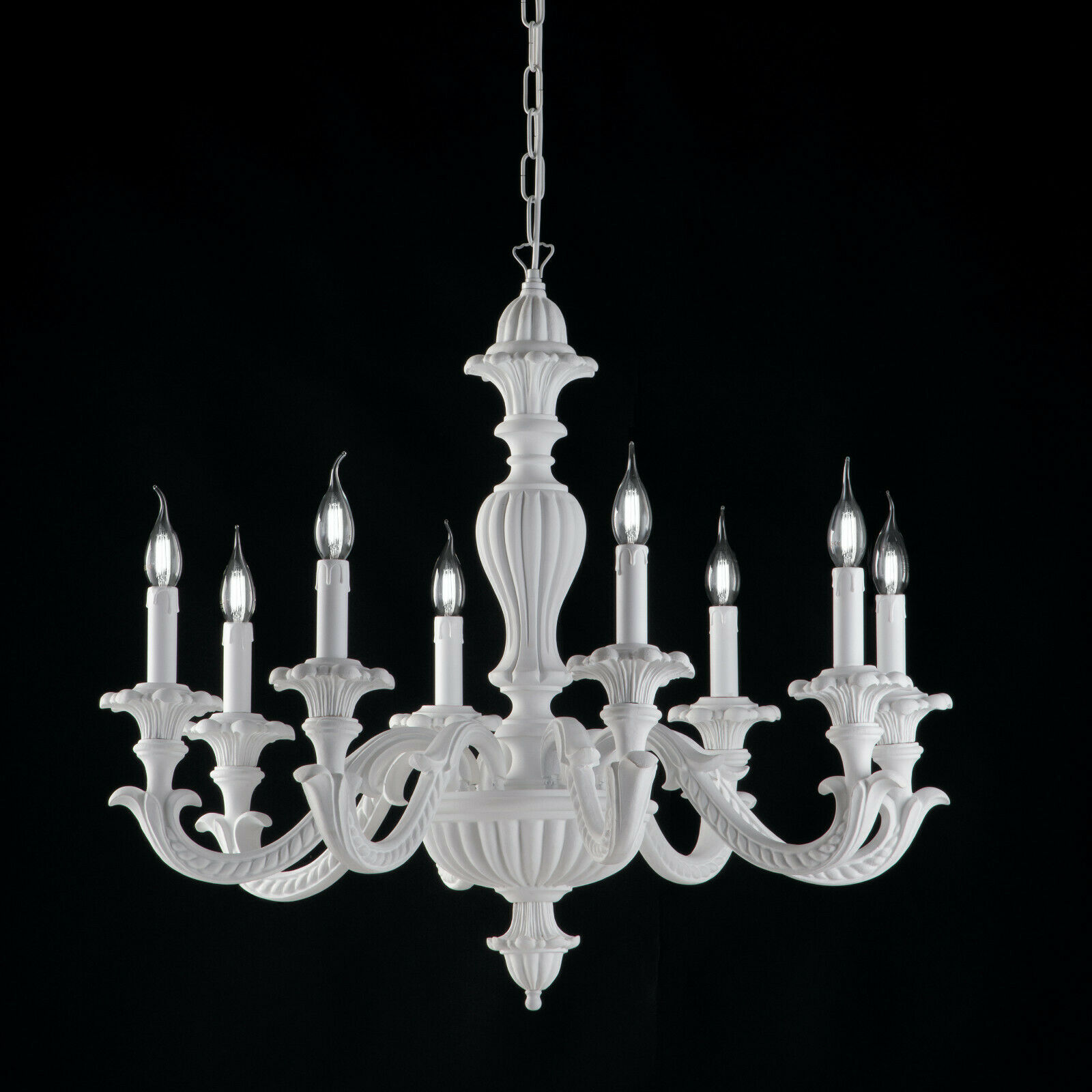 Lampadario in legno bianco shabby 8 luci diam 80 cm
