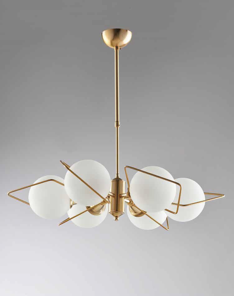 lampadario moderno in ferro con sfere bianco latte 6 luci diam 70 cm LITTLE MOON