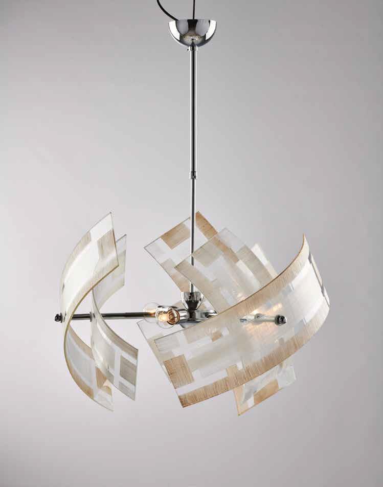 Lampadario moderno in vetro bianco e tortora con montatura cromo