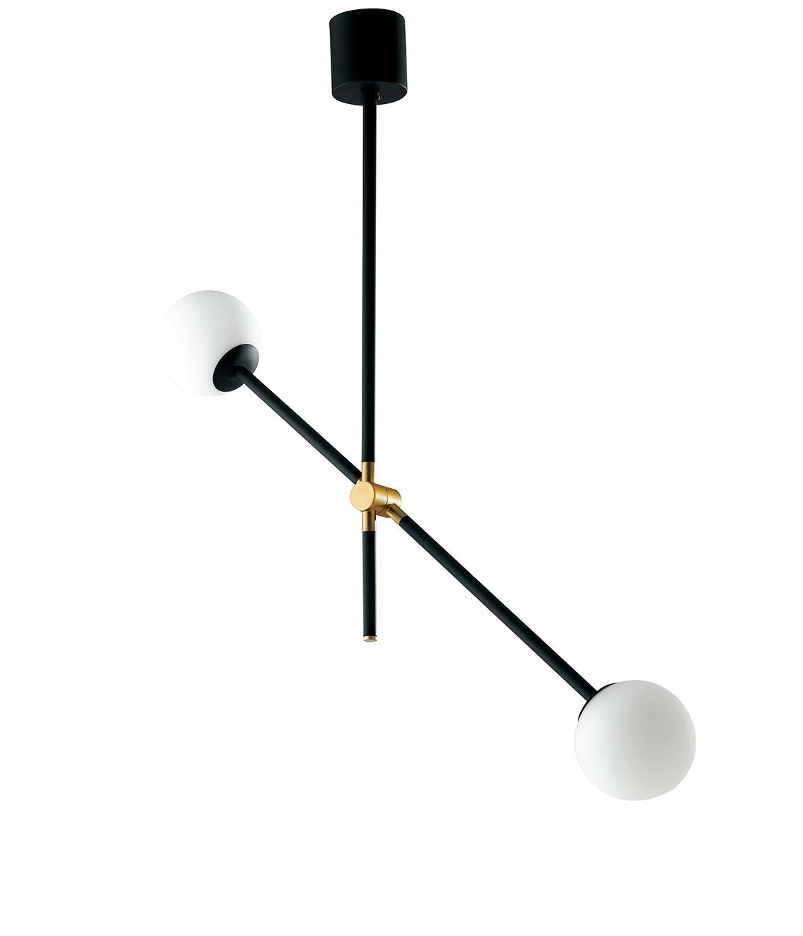 lampadario nero e oro con sfere satinate 2 luci ANTITESI