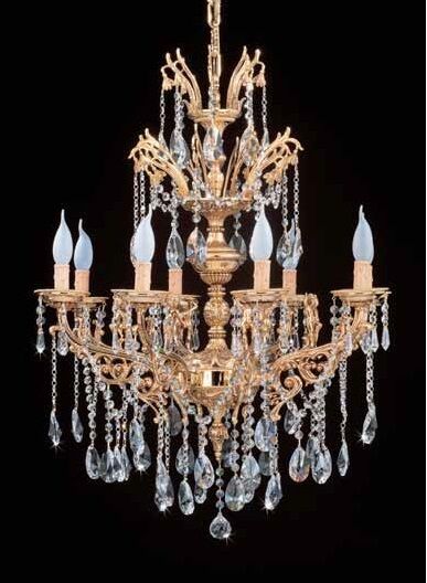 LAMPADARIO OTTONE FUSO E CRISTALLI 8 LUCI LAMPADA PER CUCINA E PER SALONE