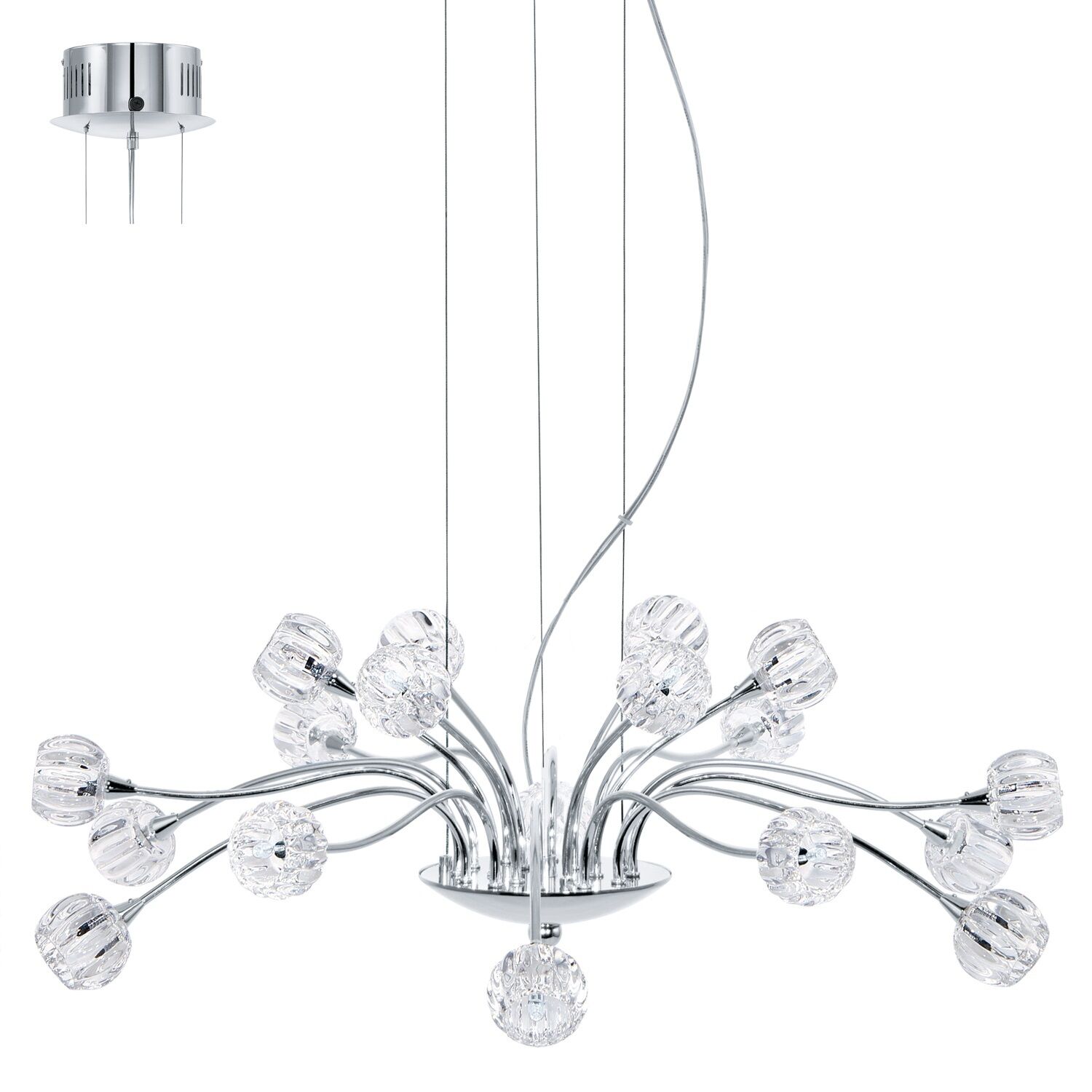LAMPADARIO SOSPENSIONE 18 LUCI ACCIAO CROMO VETRO CHIARO CAMERA SALONE CUCINA