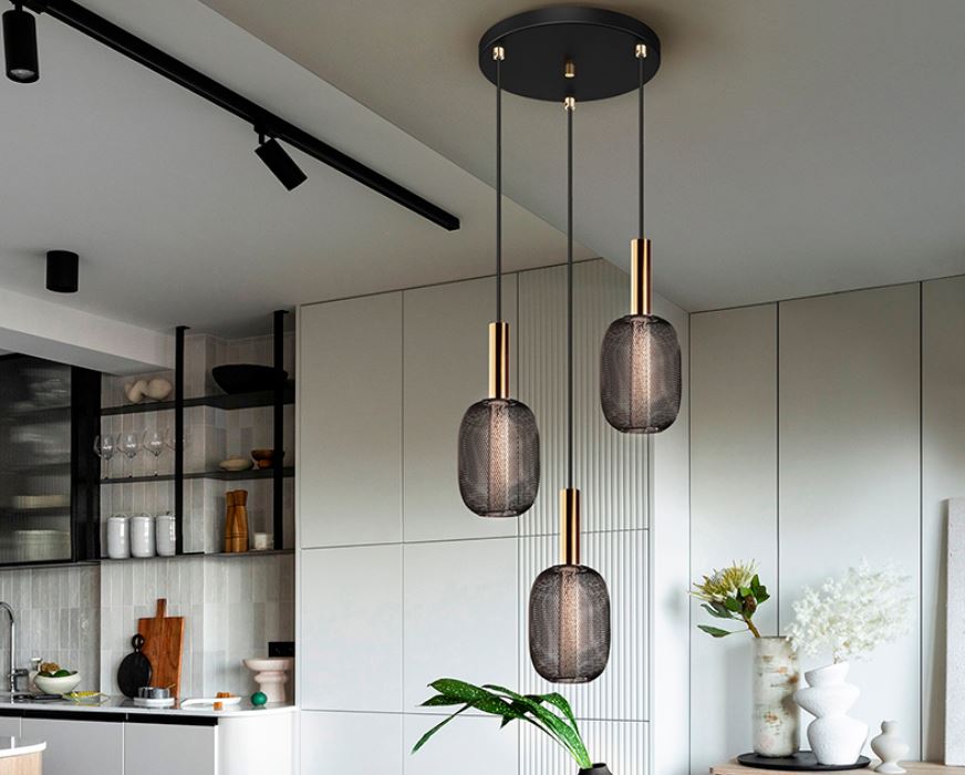 LAMPADARIO SOSPENSIONE 3L ORO/NERO MICRON