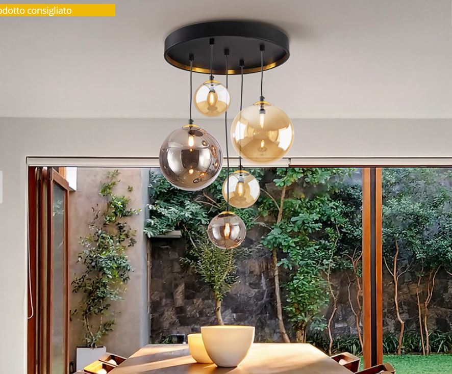 LAMPADARIO SOSPENSIONE 5L NERO OTTONE DARK