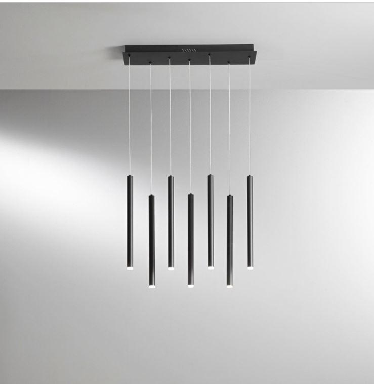 Lampadario sospensione a led tubolare nero 7 luci 3290lm 35 W L 57 cm PYPE