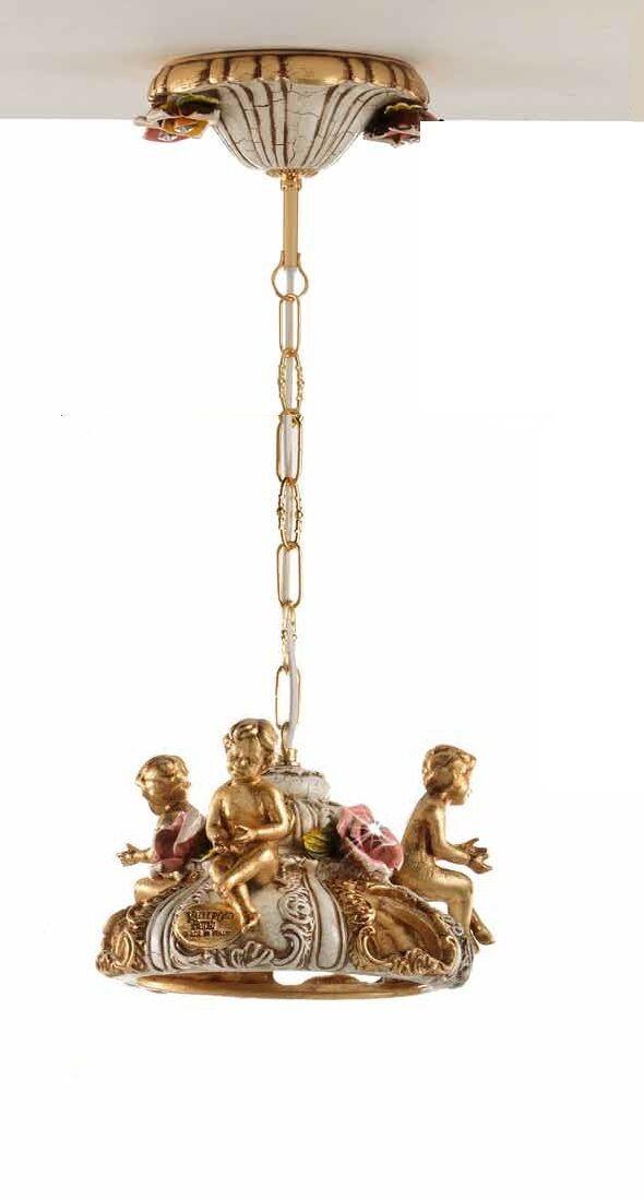 LAMPADARIO SOSPENSIONE ANGELI FIORI E CRISTALLI AVORIO FOGLIA ORO PICCOLO 1 LUCE