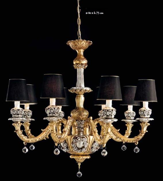 LAMPADARIO SOSPENSIONE IN CERAMICA CON ROSE E CRISTALLI E PARALUME NERO 8 LUCI