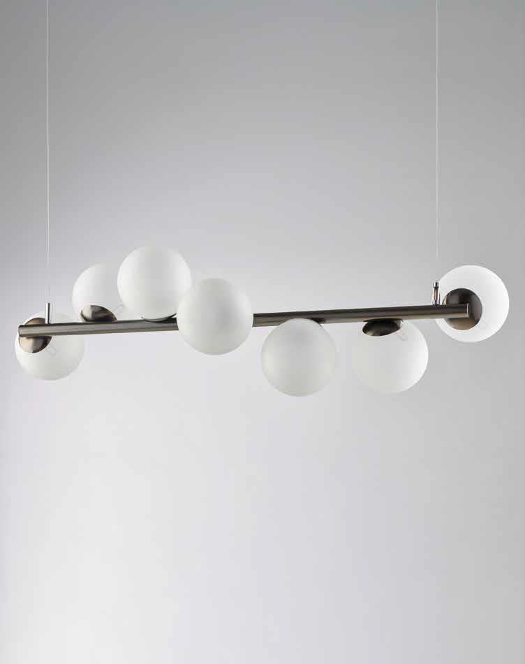 lampadario sospensione moderno con sfere bianco latte 7 luci disp diversi colori LOOP