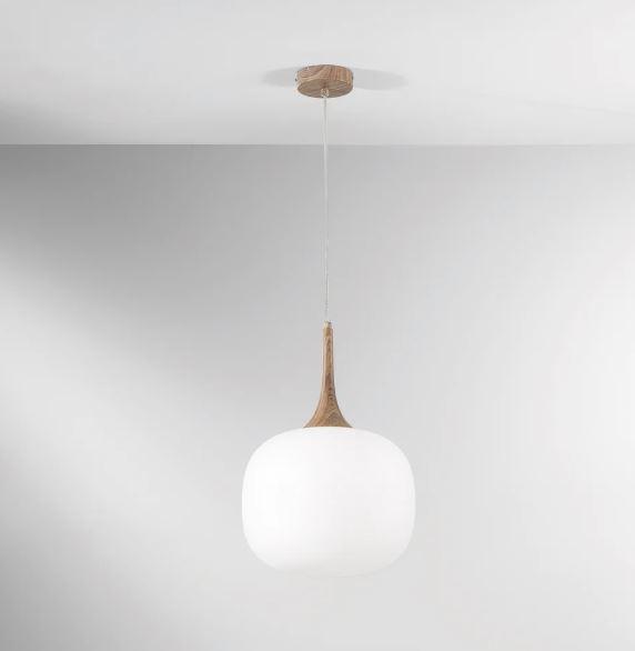 Lampadario sospensione sfere in vetro bianco e struttura effetto legno 1 luce diam 30 cm JAIPUR