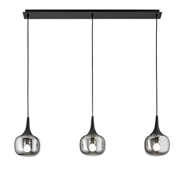 Lampadario sospensione sfere in vetro fumè struttura nera 3 luci L 97 cm JAIPUR