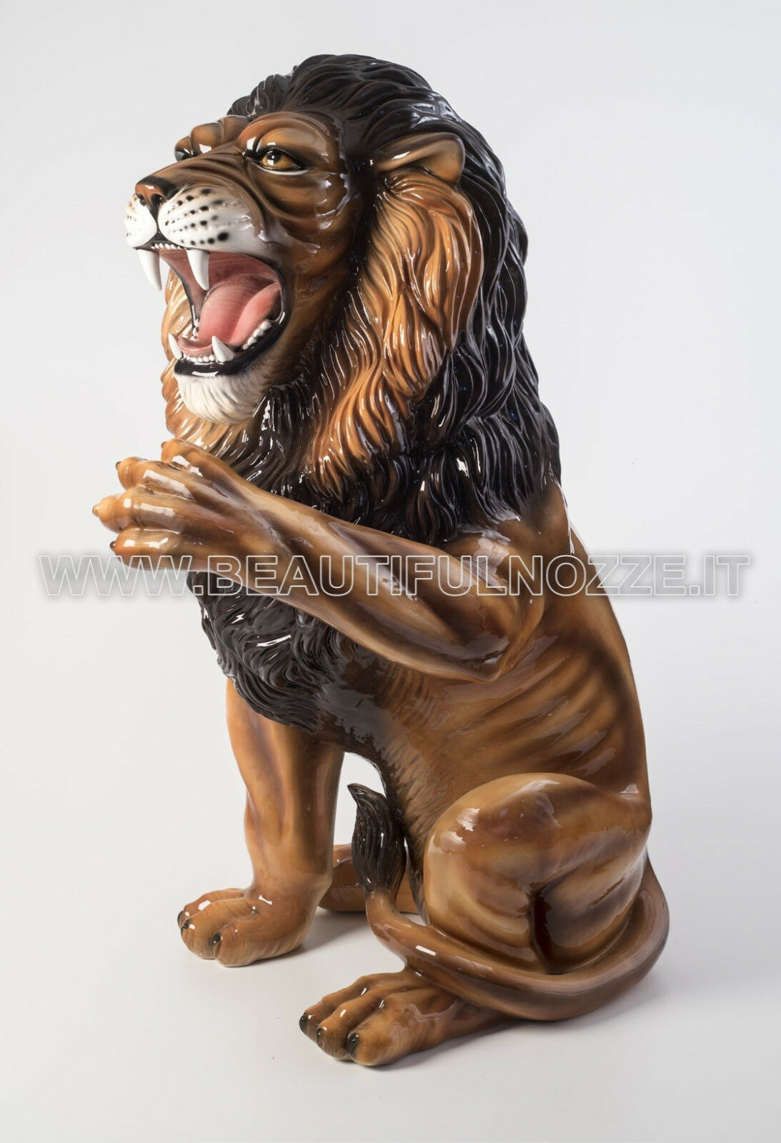 LEONE GIGANTE SEDUTO CON ZAMPA SX ALTA IN CERAMICA COLORATO ANIMALI ARREDO CASA