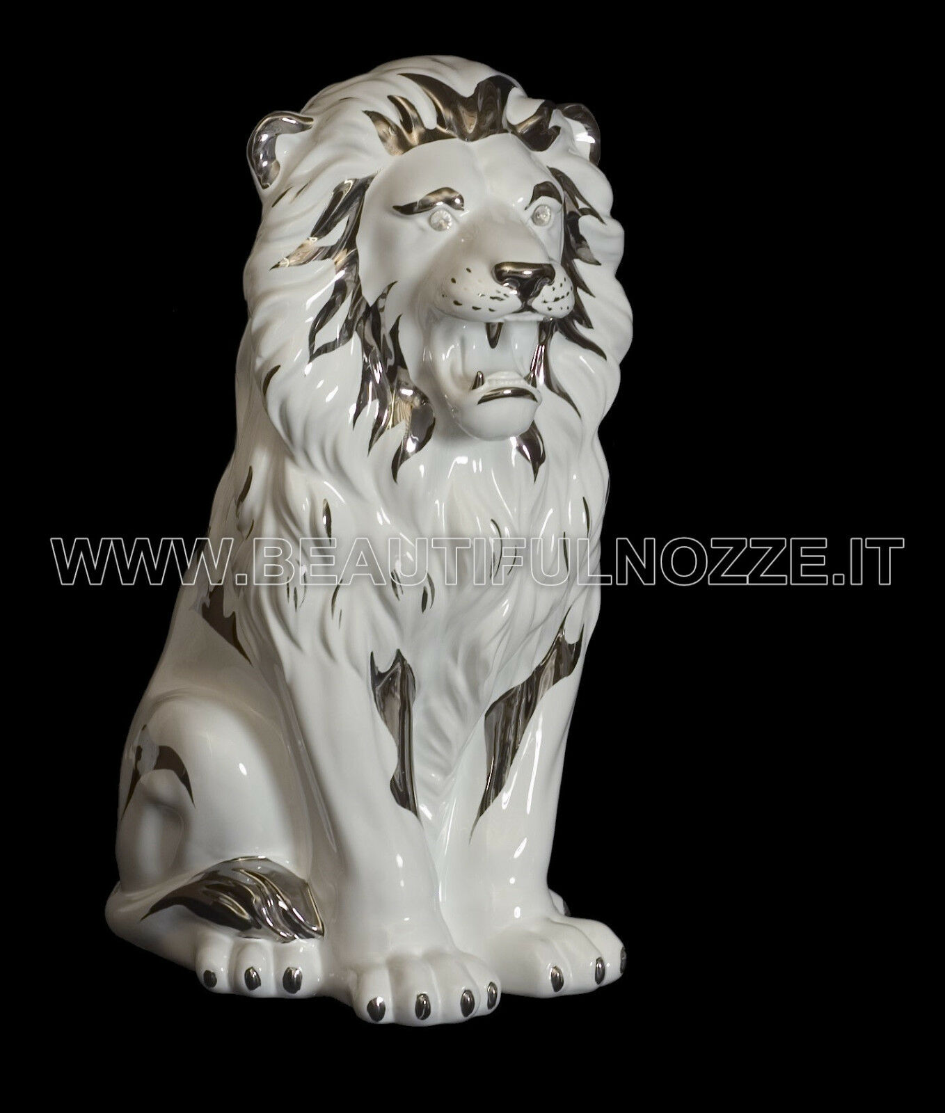 LEONE MEDIO SEDUTO IN CERAMICA BIANCO PLATINO CON CRISTALLI SWAROVSKI ANIMALI