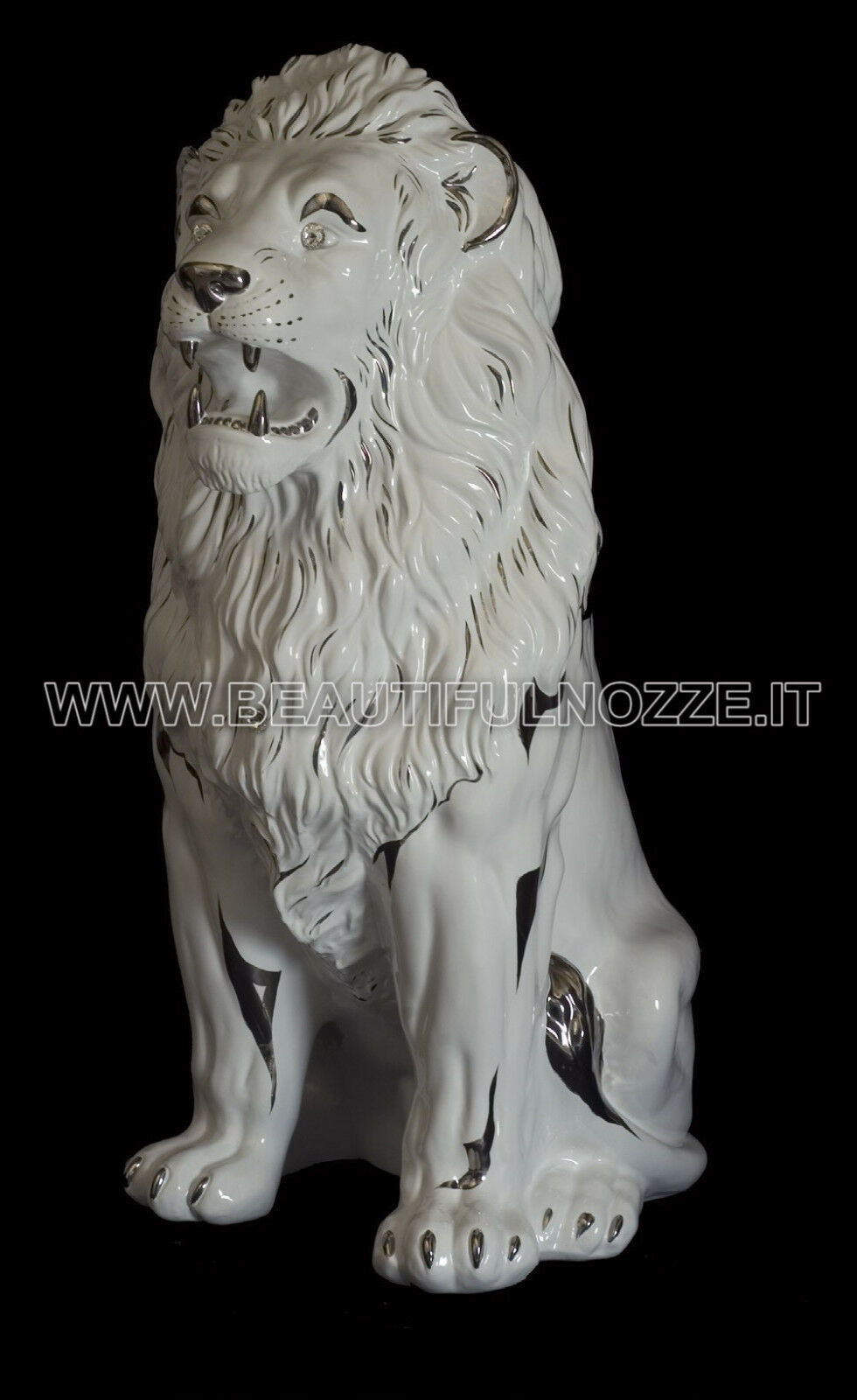 LEONE SEDUTO IN CERAMICA BIANCO PLATINO CON CRISTALLI SWAROVSKI ANIMALI