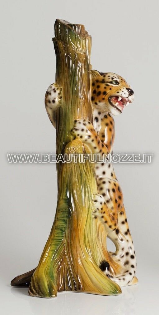 LEOPARDO MEDIO SU ALBERO IN CERAMICA COLORATA LEONE PANTERA TIGRE ARREDO CASA
