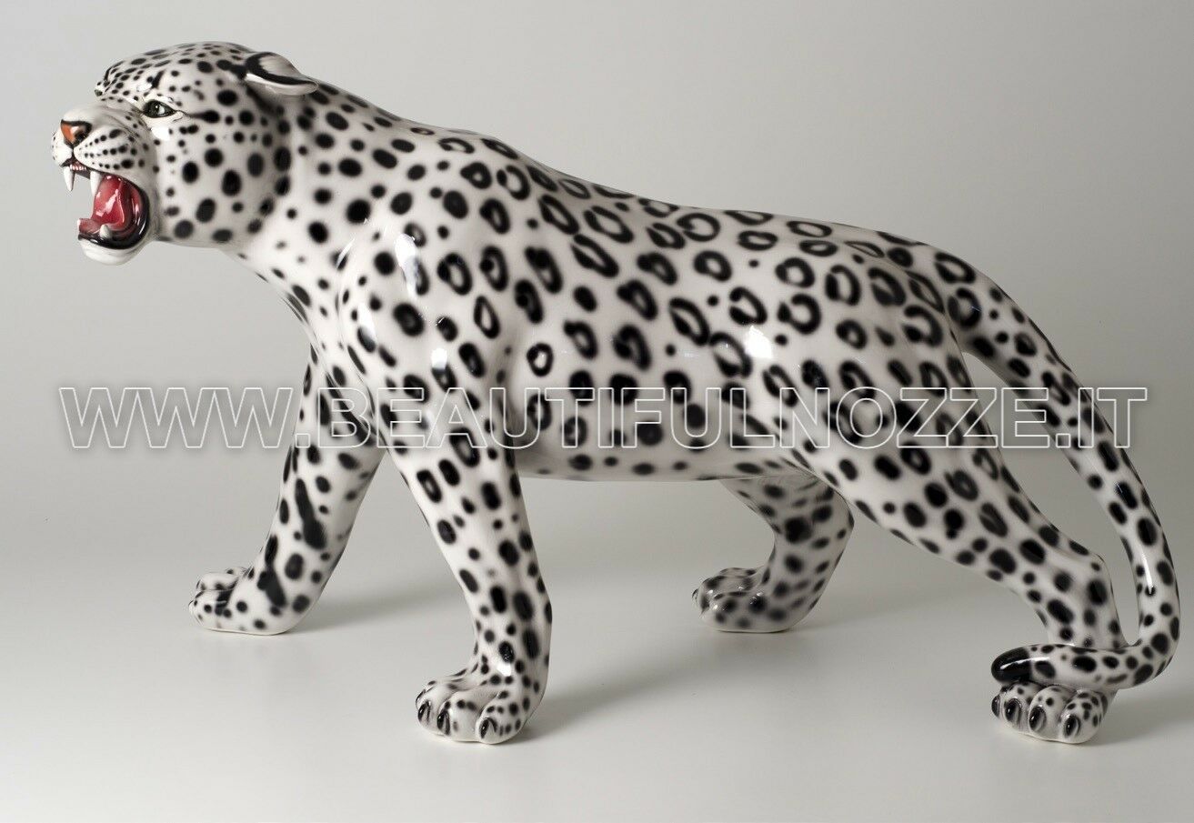 LEOPARDO SAVANA IN CERAMICA BIANCO E NERO ANIMALI ARREDO CASA
