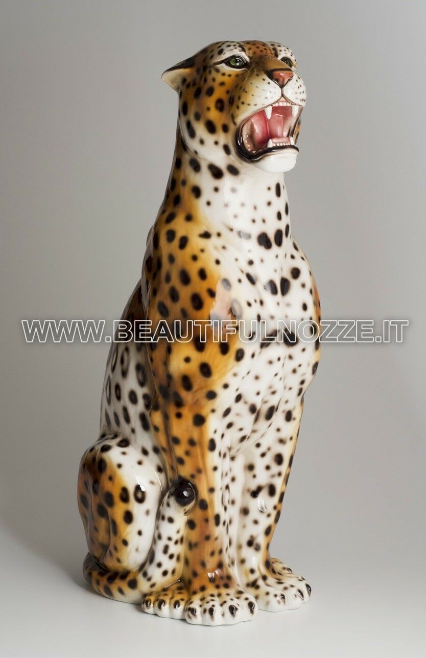 LEOPARDO SEDUTO GIGANTE IN CERAMICA COLORATO PANTERA LEONE TIGRE ARREDO CASA