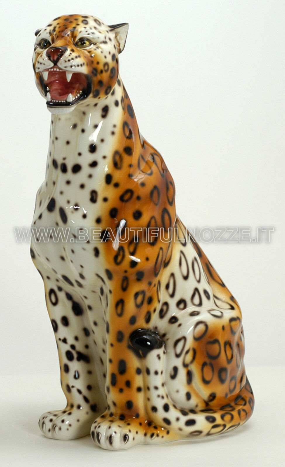 LEOPARDO SEDUTO IN CERAMICA COLORATA CON MACCHIE LEONE PANTERA TIGRE ARREDO CASA
