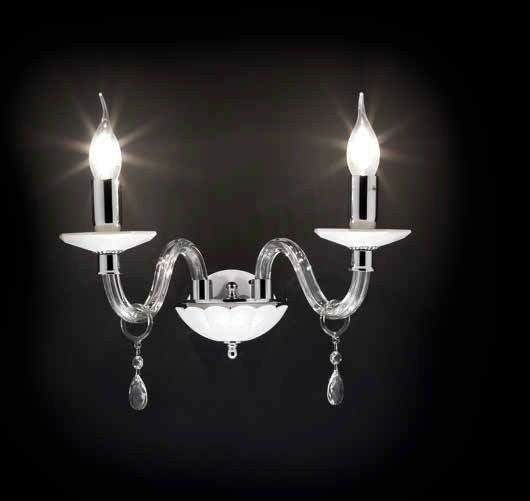 LIVIA APPLIQUE IN VETRO BIANCO E TRASPARENTE 2 LUCI