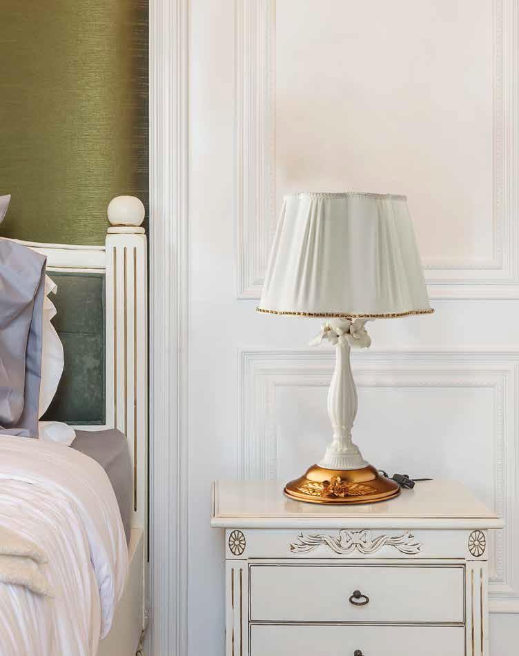 lume bianco shabby con dettagli oro e ceramica capodimonte H 25 cm diana