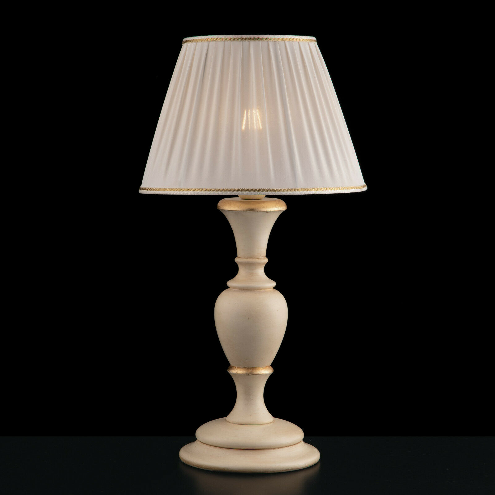 Lumetto in legno avorio e foglia oro 1 luce e paralume in plisse bianco H 43 cm