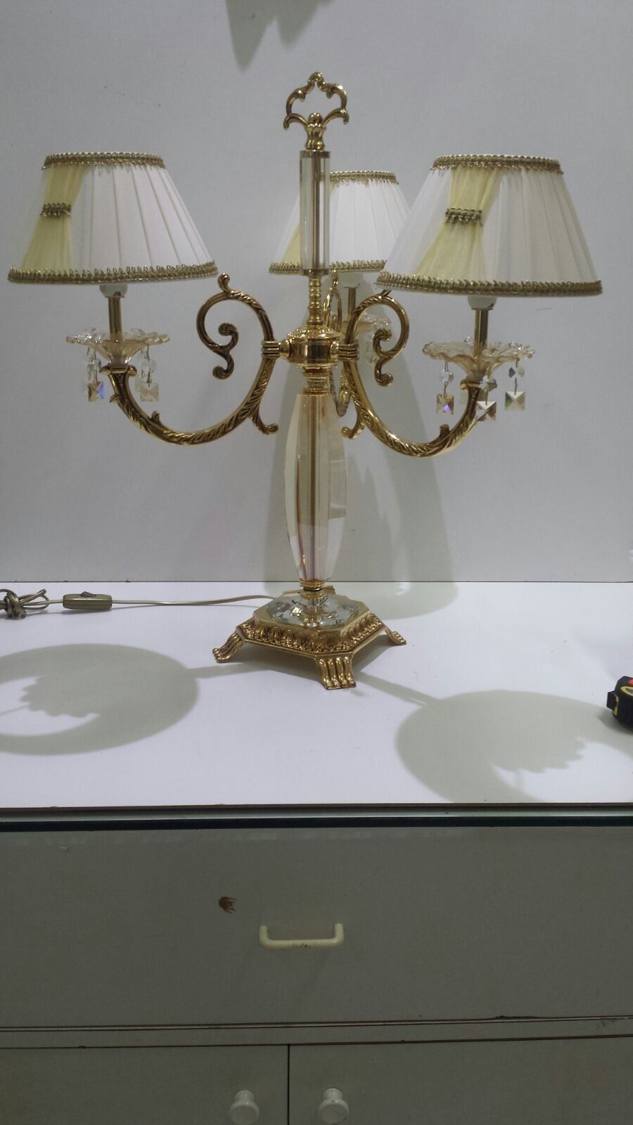 LUME LAMPADA 3 LUCI IN FUSIONE BAGNO ORO CRISTALLI PARALUME BEIGE